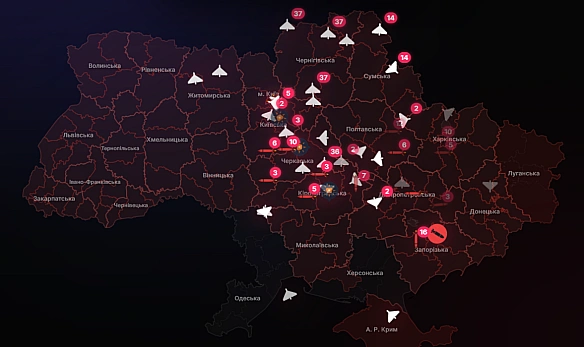 Рух ракет та дронів. Фото: скриншот/nерtun.іn.uа