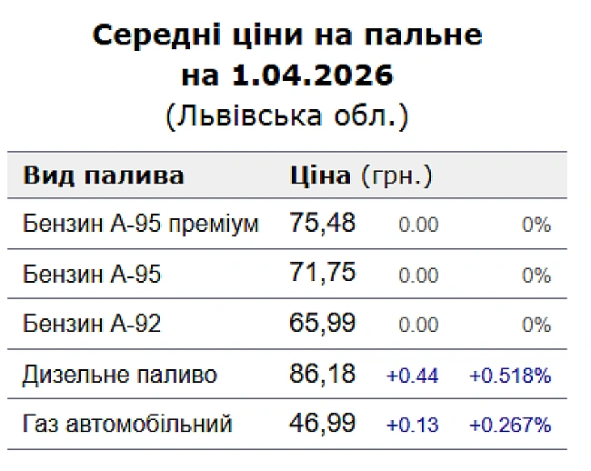 Яка вартість дизеля, бензину та газу у Львові 1 квітня