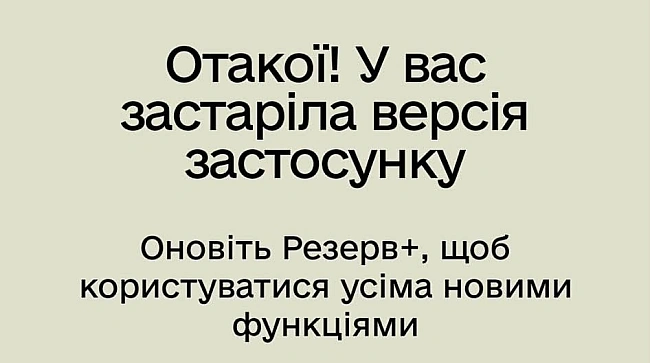 Деталі: Користувачі при відкритті "Резерв+" бачать надпис "Отакої! У вас застаріла версія застосунку".