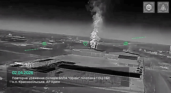 Ніч проти 2 квітня стала фатальною для російської бази безпілотників в окупованому Криму. «Мадяр» показав яскраве відео успішних уражень.